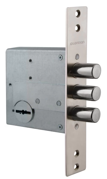 ЗВ 50.01 - Замок врезной сувальдный верхний. Замок серии Strong Security, 3-ой класс безопасности. Повышенная защита от наиболее распространенных методов вскрытия: защита от самоимпрессии – втулка на корпусе и крышке замка; защита от вскрытия отмычкой – ложные пазы на стойке и сувальдах, увеличенная жесткость пружин сувальд; защита от «свертыша» – ослабленный зуб рейки хвостовика; защита от взлома – при полностью выдвинутых ригелях замка, 30% их длины остается в корпусе замка, усилена конструкция засовов; защита от высверливания – внешняя бронепластина, закаленная стойка рейки хвостовика; защита от вандалов – отсутствует нижняя стенка корпуса замка. Предназначен для установки в металлические двери, шкафы и сейфы.