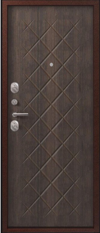 Надежная входная Дверь V-02 медь антик - венге премиум класса по цене 32 350 руб. Большая толщина стали защитит от проникновения в ваш дом, квартиру или коттедж. Используется очень качественная фурнитура: замки, цилиндры, ручки, защелки. Покрытие и отделка двери изготовлено под внимательным контролем производителя. Дверь имеет долгий срок службы и гарантию.